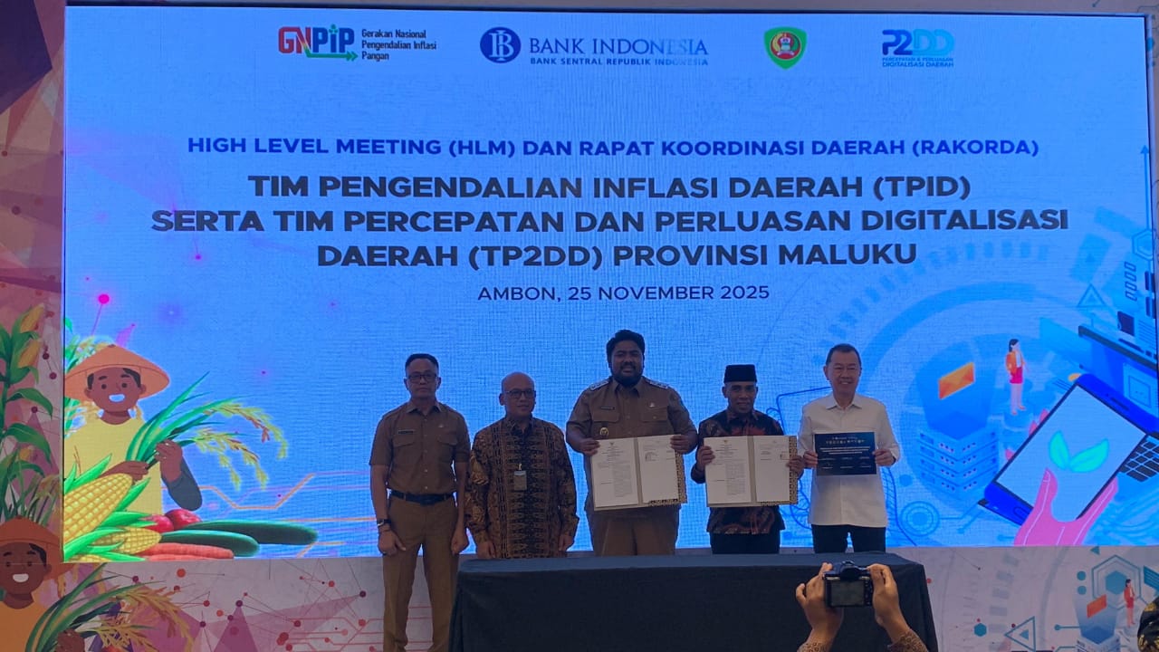 TRISULAMALUKU.COM, Ambon – Kepala Bank Indonesia Provinsi Maluku, Muhammad Latief, menegaskan pentingnya sinergi lintas sektor untuk menjaga stabilitas harga dan mendorong percepatan digitalisasi daerah menjelang Hari Besar Keagamaan Nasional (HBKN) Natal 2025 dan Tahun Baru 2026. Hal itu disampaikan dalam High Level Meeting (HLM) dan Rakorda TPID–TP2DD yang digelar di Swiss-Belhotel Ambon, Selasa (25/11/2025).