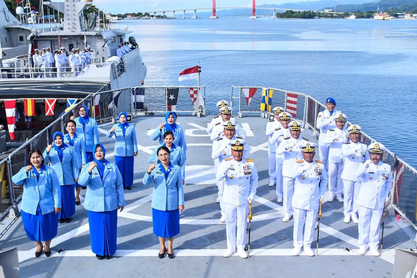 Hadir dalam kegiatan tersebut Wadan Kodaeral IX, Laksma TNl Dr. Muhammad Risahdi, Ketua Daerah Kodaeral IX Gabungan Jalasenastri Koarmada Rl, Ny. Inca Hanarko Djodi Pamungkas beserta jajaran pengurus, para Pejabat Utama Dankodaeral IX dan Kasatker Kodaeral IX. (@Dispen Kodaeral IX)