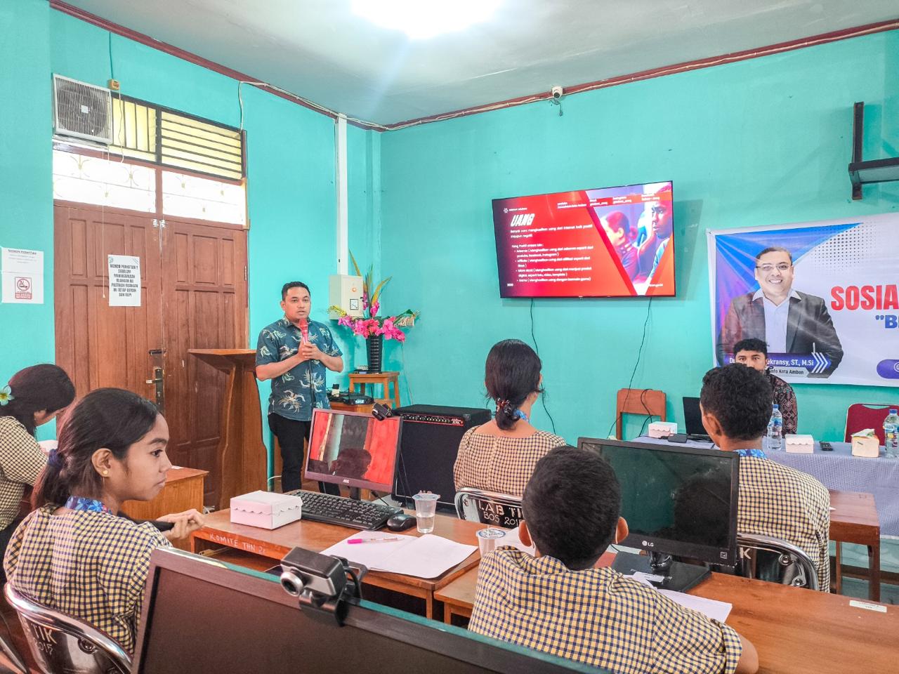 Kegiatan ini juga sejalan dengan arah kebijakan pembangunan dalam Rencana Pembangunan Jangka Panjang Daerah (RPJPD) Kota Ambon 2025, yang salah satu fokusnya adalah meningkatkan pemanfaatan teknologi informasi dan komunikasi (TIK) di berbagai sektor strategis. Oleh karena itu, sosialisasi literasi digital akan terus dilakukan di berbagai sekolah di Ambon dengan melibatkan staf Diskominfo, akademisi dari Fisip Unpatti, serta anggota GMKI sebagai narasumber.