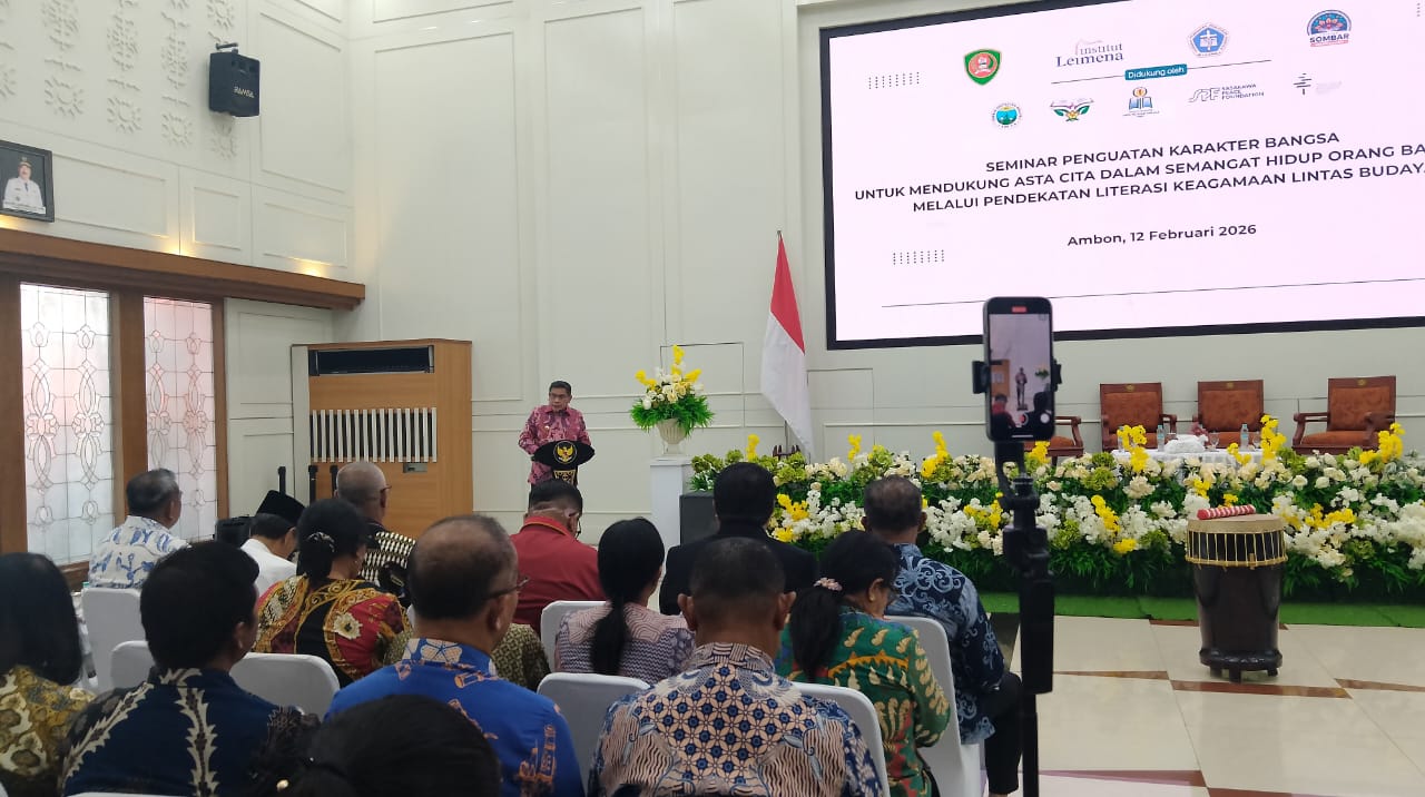 TM.COM, AMBON – Pemerintah Kota Ambon, Bodewin Wattimena menegaskan pentingnya memperkuat karakter bangsa dan menghidupkan kembali nilai-nilai kearifan lokal sebagai fondasi menjaga persatuan. Hal ini disampaikan dalam seminar yang berlangsung di Lantai 7 Kantor Gubernur Maluku, Kamis (12/2/2026).