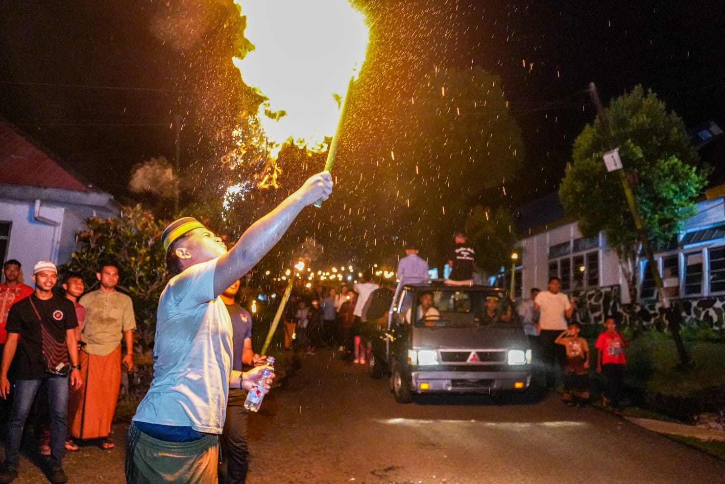 Setelah dilepas Dankodaeral lX, para peserta berjalan mengelilingi kompleks Mako Kodaeral IX. Cahaya obor yang dibawa oleh para prajurit dan keluarga menjadi simbol semangat kebersamaan serta syiar Islam dalam merayakan hari kemenangan setelah sebulan penuh menjalankan ibadah puasa.