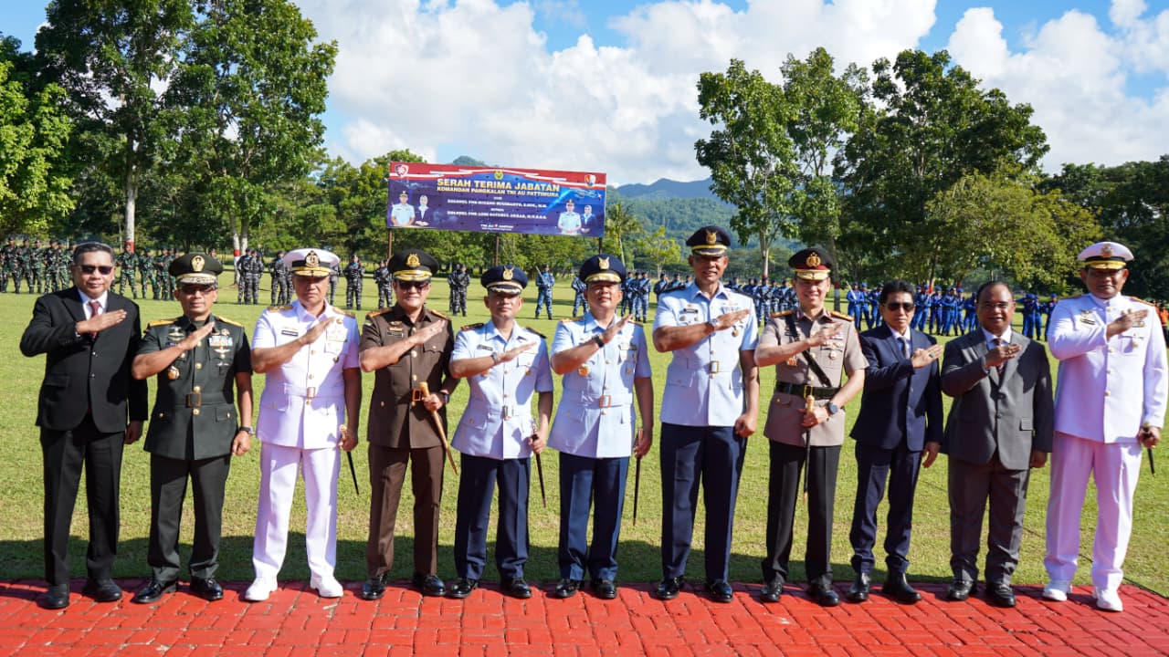 TM.COM, TNI AL-Kodaeral IX (23/4/2026). Komandan Komando Daerah TNI Angkatan Laut (Dankodaeral) IX, Laksamana Muda TNI Hanarko Djodi Pamungkas, S.H. didampingi Ketua Daerah Kodaeral lX Gabungan Jalasenastri Koarmada Rl, Ny. Inca Hanarko Djodi menghadiri Upacara Serah Terima Jabatan (Sertijab) Komandan Pangkalan TNI Angkatan Udara (Danlanud) Pattimura pada Kamis (23/4/2026).